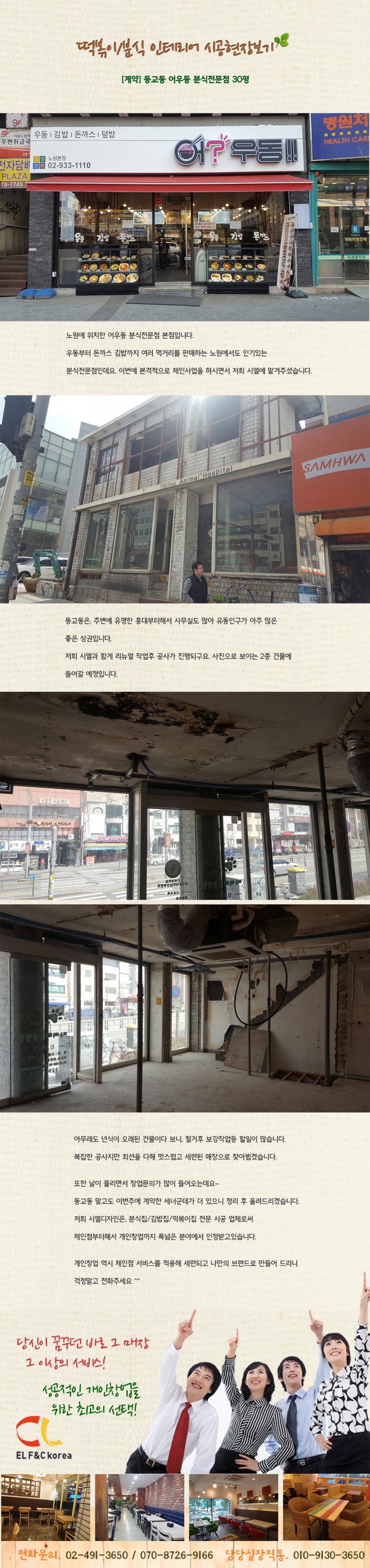 [계약]동교동 어우동분식전문점 30평 페이지 정보 작성자 시엘에프앤씨 댓글 0건 조회 3,445회 작성일 18-03-14 13:21 본문 [계약]동교동 어우동분식전문점 30평 목록 답변 이전글[계약]창동 김밥/분식전문점 18.04.03 다음글[계약]파주 커피전문점 17평 18.03.14 등록된 댓글이 없습니다.