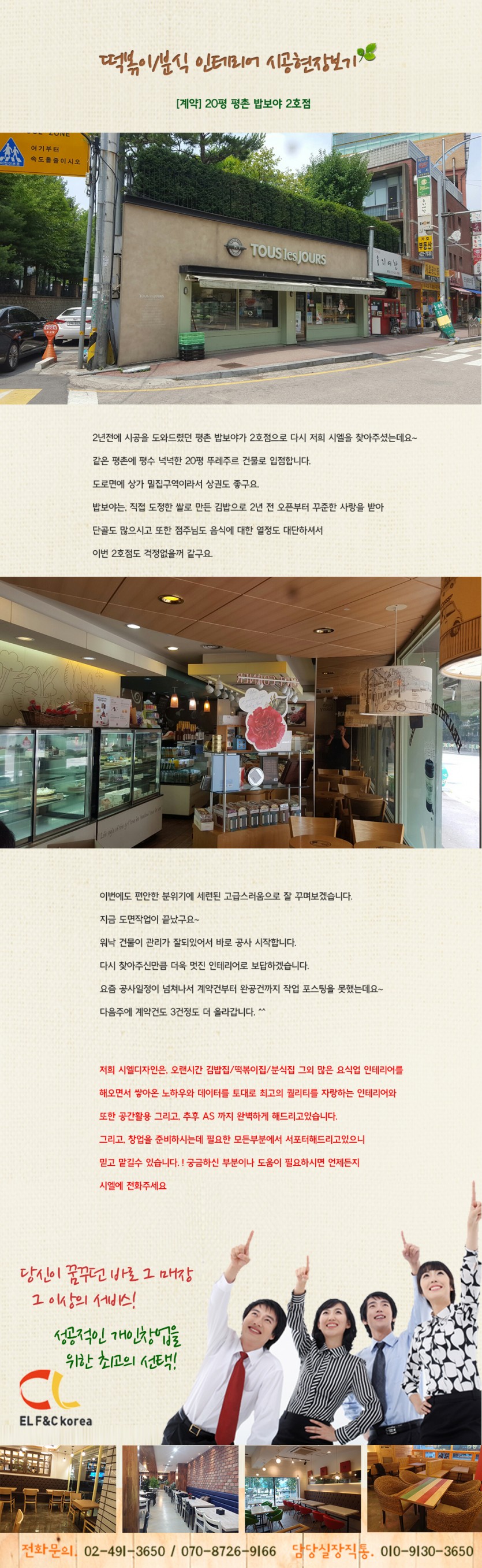 [계약]20평 평촌 밥보야 2호점 김밥전문점 페이지 정보 작성자 시엘에프앤씨 댓글 0건 조회 3,016회 작성일 17-07-05 15:37 본문 [계약]20평 평촌 밥보야 2호점 김밥전문점 목록 답변 이전글[계약]8평 문래동 달떡볶이 17.07.05 다음글[계약]45평 조선육회 안산7호점 17.07.05 등록된 댓글이 없습니다.