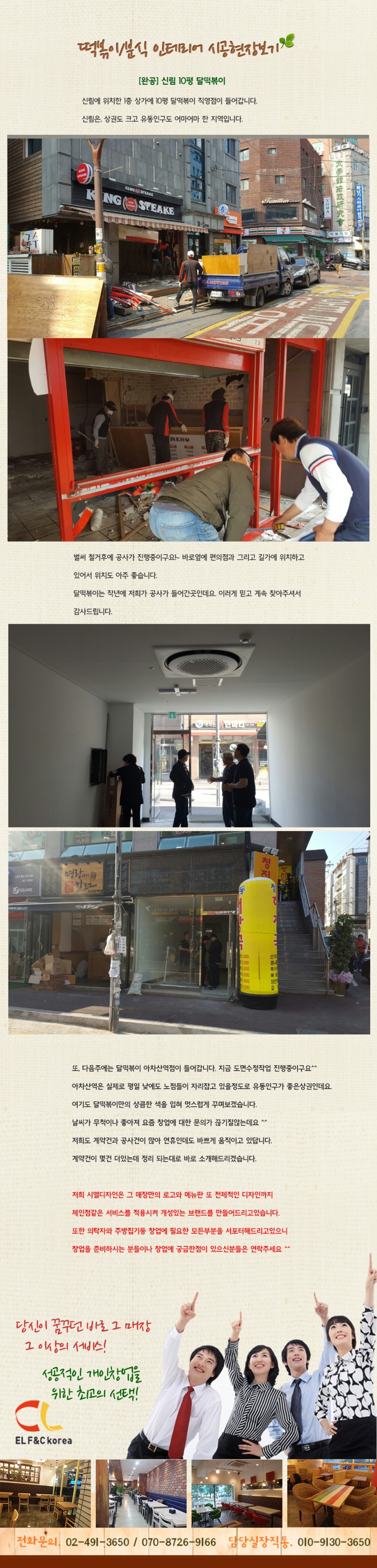 [계약]신림 10평 달떡볶이 직영점 페이지 정보 작성자 시엘에프앤씨 댓글 0건 조회 3,025회 작성일 17-05-02 15:56 본문 [계약]신림 10평 달떡볶이 직영점 목록 답변 이전글[계약] 일산 연희김밥 17.05.26 다음글[계약]오산 10평 마녀꼬마김밥 리모델링 17.05.02 등록된 댓글이 없습니다.