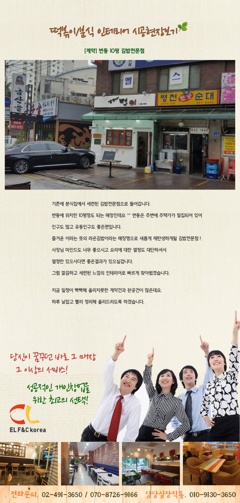 [계약]번동 김밥전문점 10평 페이지 정보 작성자 시엘에프앤씨 댓글 0건 조회 3,063회 작성일 16-11-15 14:20 본문 [계약]번동 김밥전문점 10평 목록 답변 이전글[계약]울산 카우떡볶이 13평 16.11.15 다음글[계약] 문정동 꼬지사께 퓨전선술집 16.11.01 등록된 댓글이 없습니다.