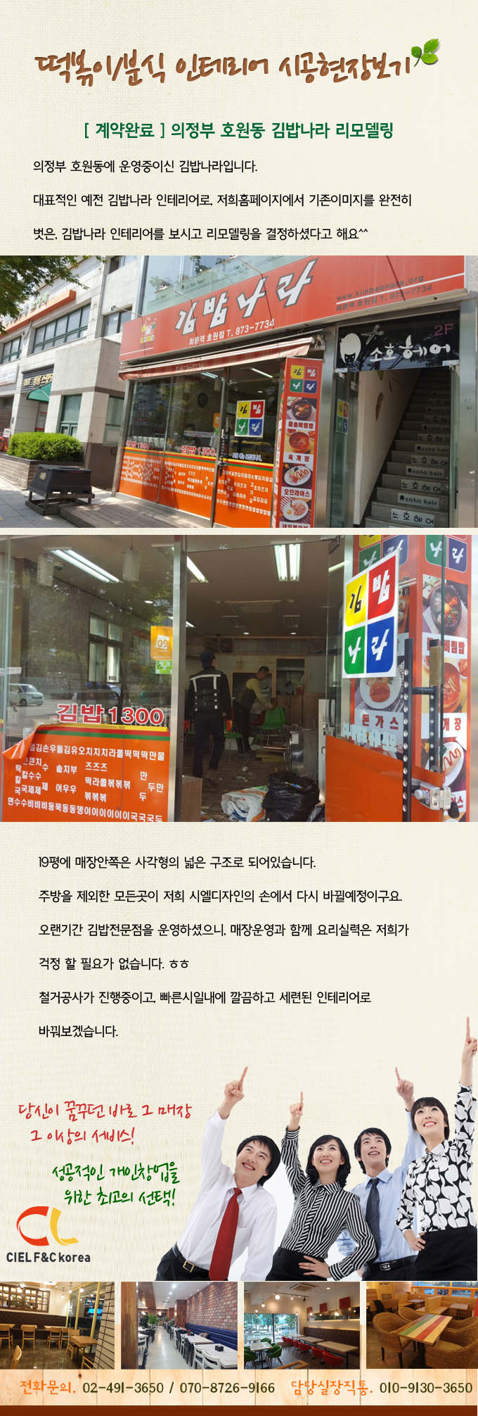 [계약]의정부 호원동 김밥나라 리모델링 페이지 정보 작성자 시엘에프앤씨 댓글 0건 조회 3,444회 작성일 16-05-16 16:09 본문 [계약]의정부 호원동 김밥나라 리모델링 목록 답변 이전글 [계약]고수떡볶이 한울4호점 16.05.27 다음글[계약]일산 덕이동 20평 김밥천국 부분리모델링 16.05.06 등록된 댓글이 없습니다.